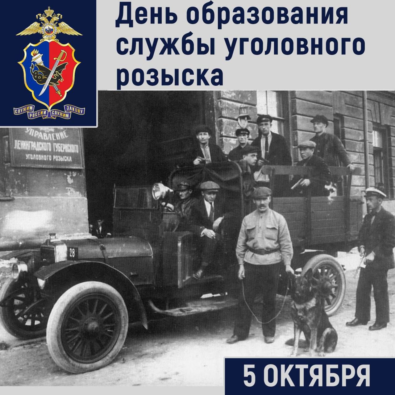 История современного уголовного розыска начинается 5 октября 1918 года, когда постановлением коллегии Народного комиссариата внутренних дел РСФСР в составе Главного управления рабоче-крестьянской милиции учреждено Центральное управление уголовного розыска (Центророзыск) с подчиненными подразделениями на местах.