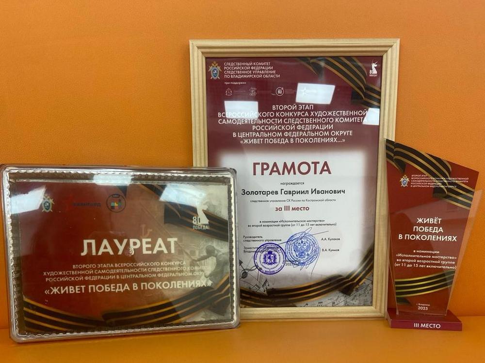 Следственное управление СК России по Костромской области на конкурсе представлял член семьи сотрудника регионального СК Гавриил Золотарев - сын руководителя Шарьинского межрайонного следственного отдела. Гавриил Золотарев учится в 9 классе СОШ №4 города Шарьи, в прошлом году он окончил обучение в музыкальной школе по курсу «Народные инструменты. Баян». В номинации «Исполнительское мастерство» Гавриил Золотарев исполнил музыкальный этюд и по итогам конкурса занял третье призовое место в своей возрастной категории.