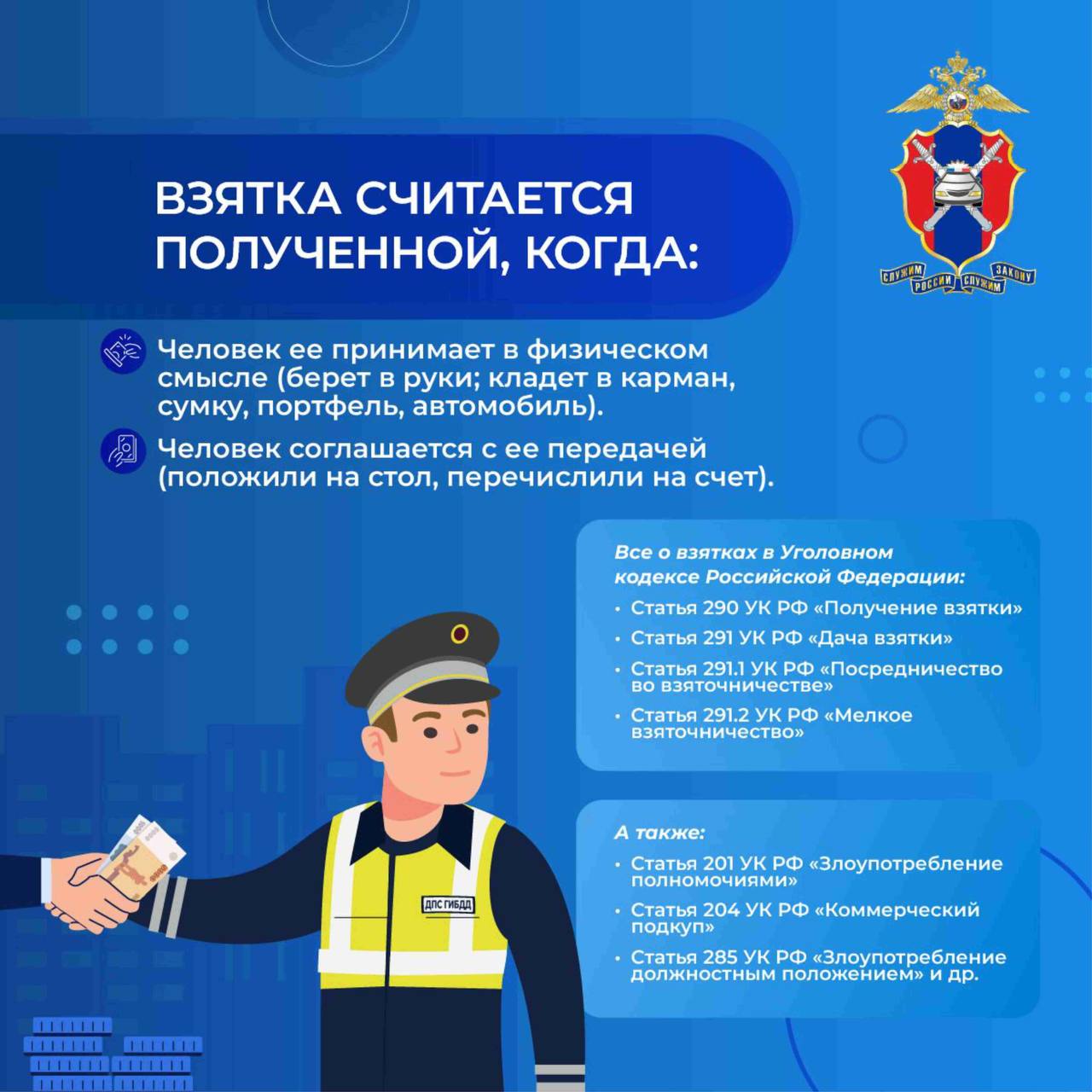 Необходимо осознавать, что дача взятки сотруднику Госавтоинспекции - это преступление, предусмотренное статьей 291 Уголовного кодекса Российской Федерации.