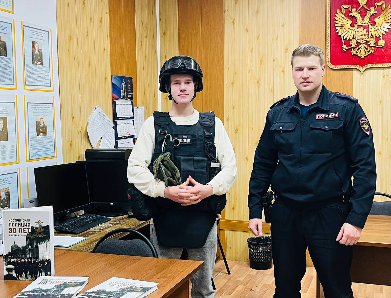 В Вохме выпускники высших учебных заведений МВД России Максим Холмов и Константин Парфенов рассказали ребятам о своем пути в профессию и об учебных заведениях, где они учились, после чего продемонстрировали обмундирование сотрудников ОВД