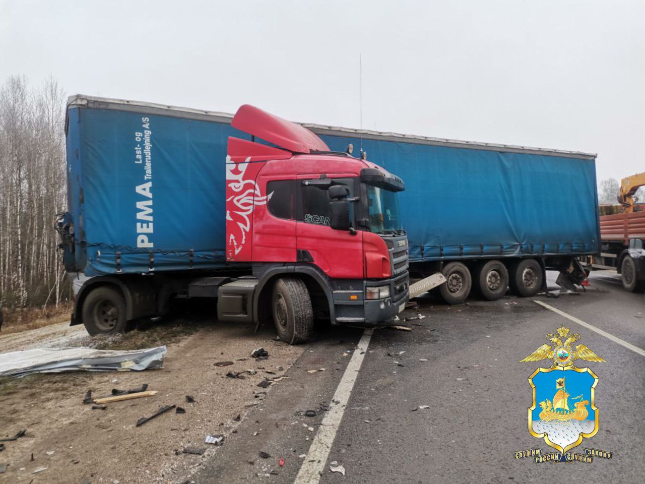 Водитель фуры не учел погодные условия, выехал на встречную полосу и столкнулся с автомобилем Газель. На месте происшествия работают сотрудники полиции, проводится проверка.