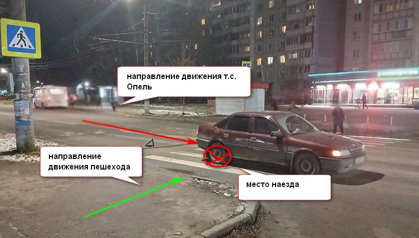 Вчера в 19 часов 15 минут в Костроме в микрорайоне Черноречье 66-летний водитель автомобиля Опель допустил наезд на 67-летнюю женщину, которая пересекала проезжую часть по нерегулируемому пешеходному переходу. В результате наезда пешеход получила телесные повреждения, госпитализирована в медицинское учреждение.