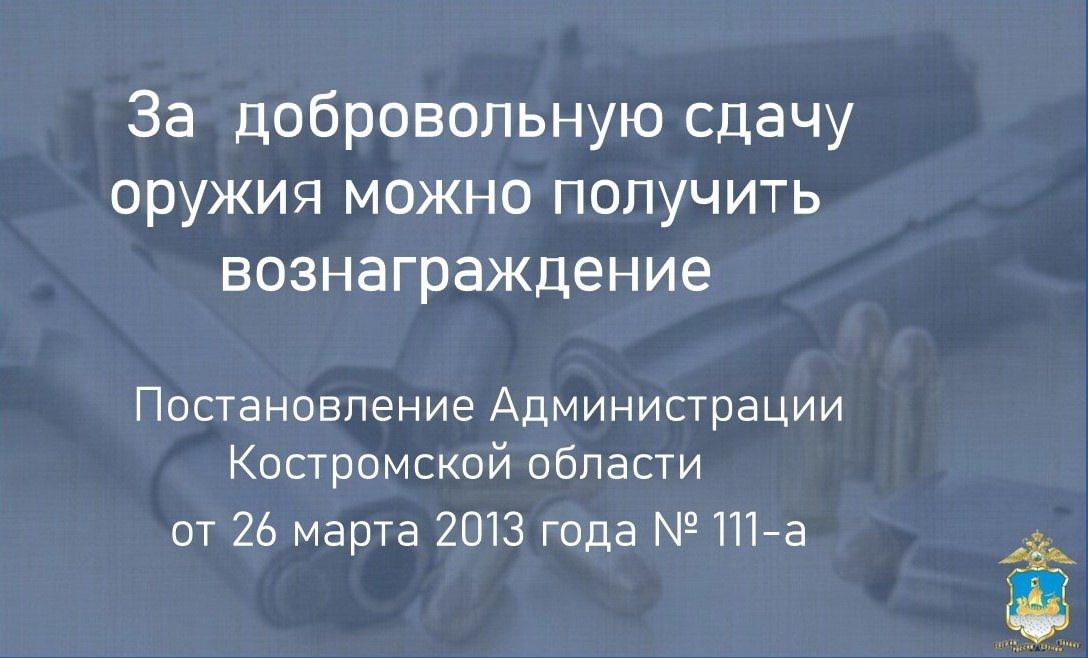 Сотрудники УМВД России по г. Кострома напоминают, что добровольная сдача незарегистрированного оружия освобождает от уголовной ответственности за его хранение