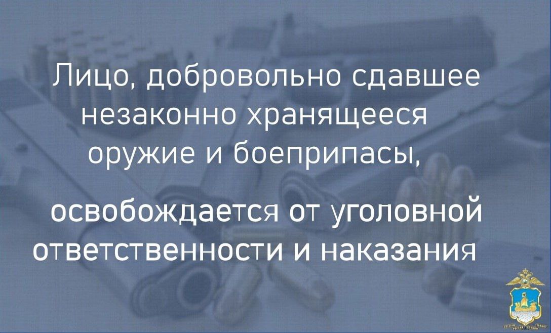 За незаконные хранение оружия, его основных частей, боеприпасов, взрывчатых веществ и взрывных устройств предусмотрена уголовная ответственность. Вместе с тем, у граждан есть возможность избежать уголовного преследования если добровольно сдать его.
