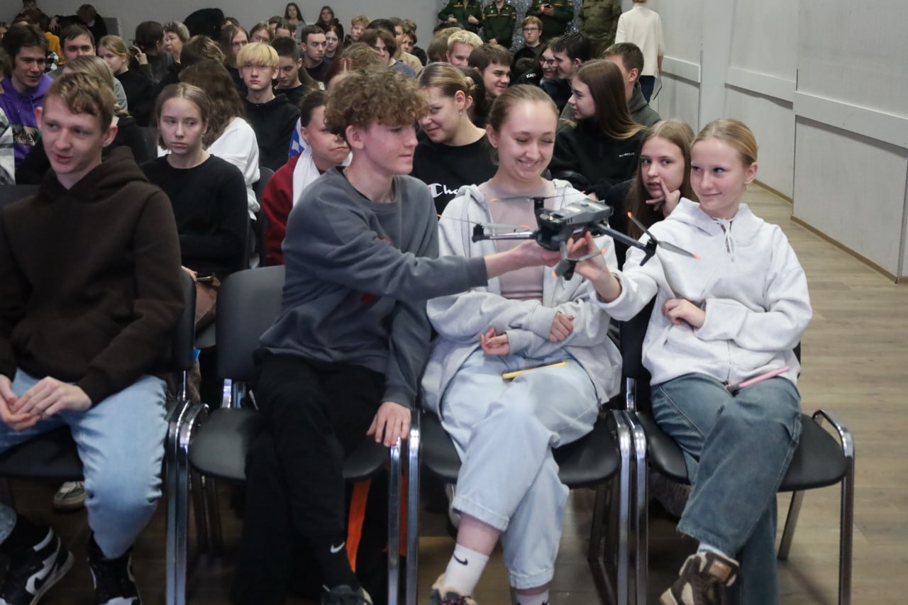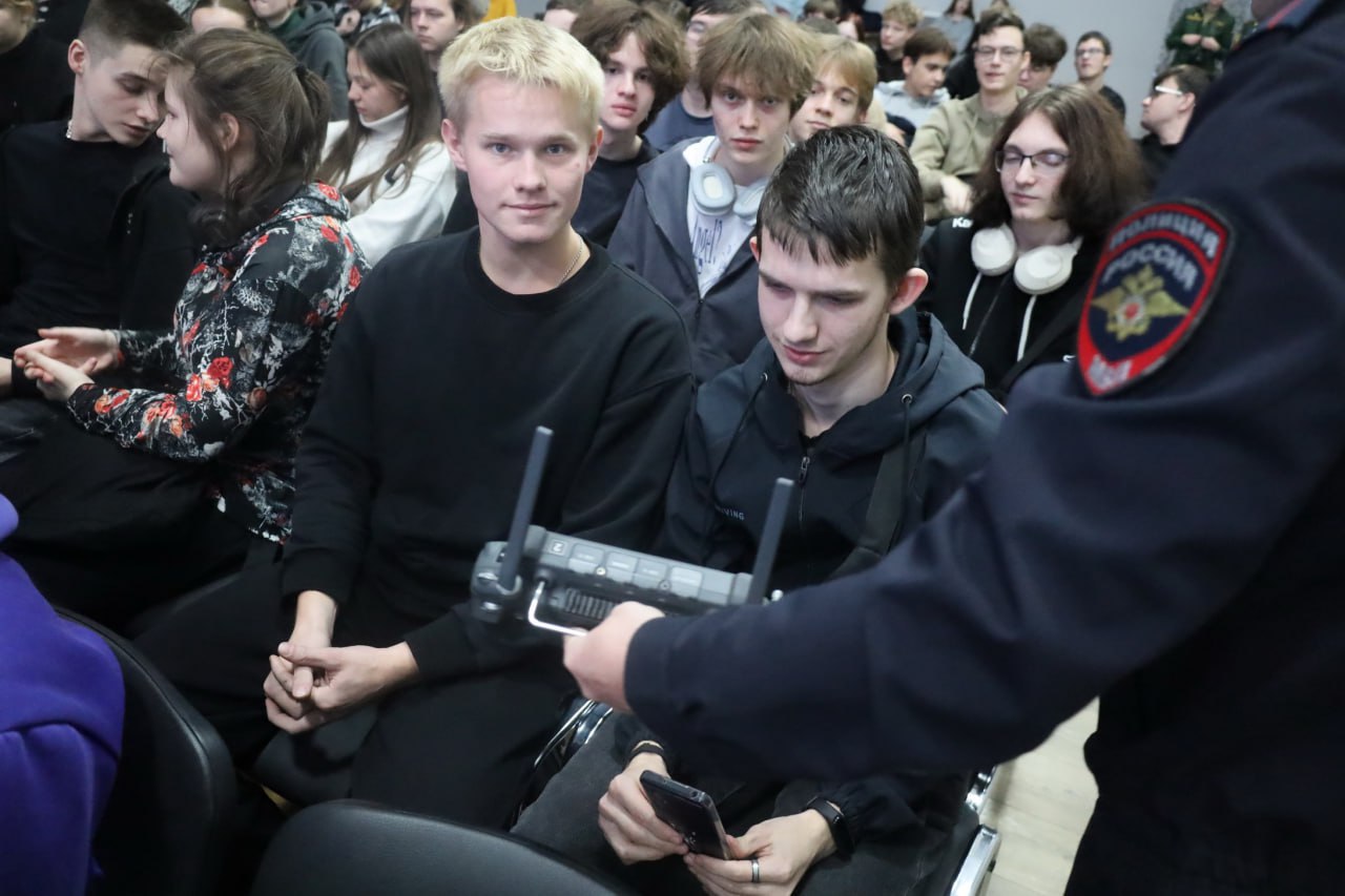 Сотрудники специализированной группы продемонстрировали студентам несколько беспилотных летательных аппаратов, возможности которых сегодня широко используются стражами правопорядка в выявлении пресечении преступлений