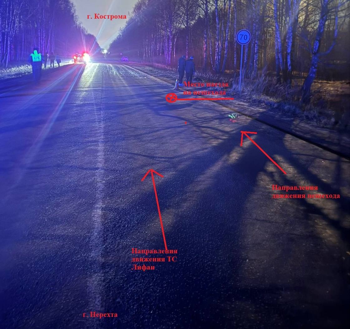 Вчера в 21 час 22 минуты на 11 км автодороги «Кострома-Нерехта» Костромского района 51-летняя женщина, управляя автомобилем Лифан, совершила наезд на 30-летнего мужчину, который двигался по краю проезжей части по ходу движения без световозвращающих элементов. В результате ДТП пешеход скончался на месте происшествия.