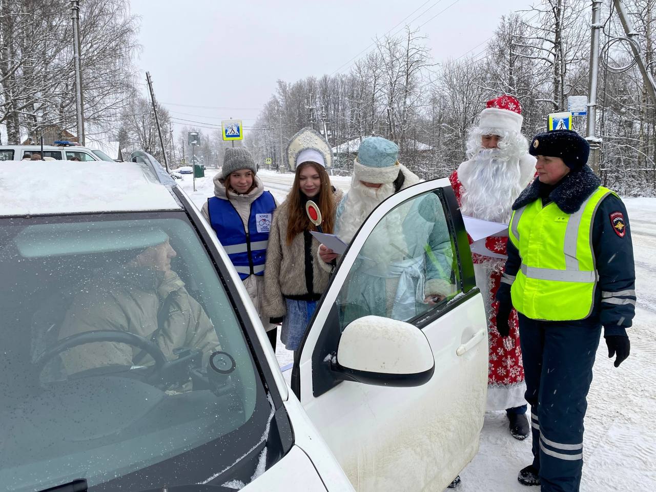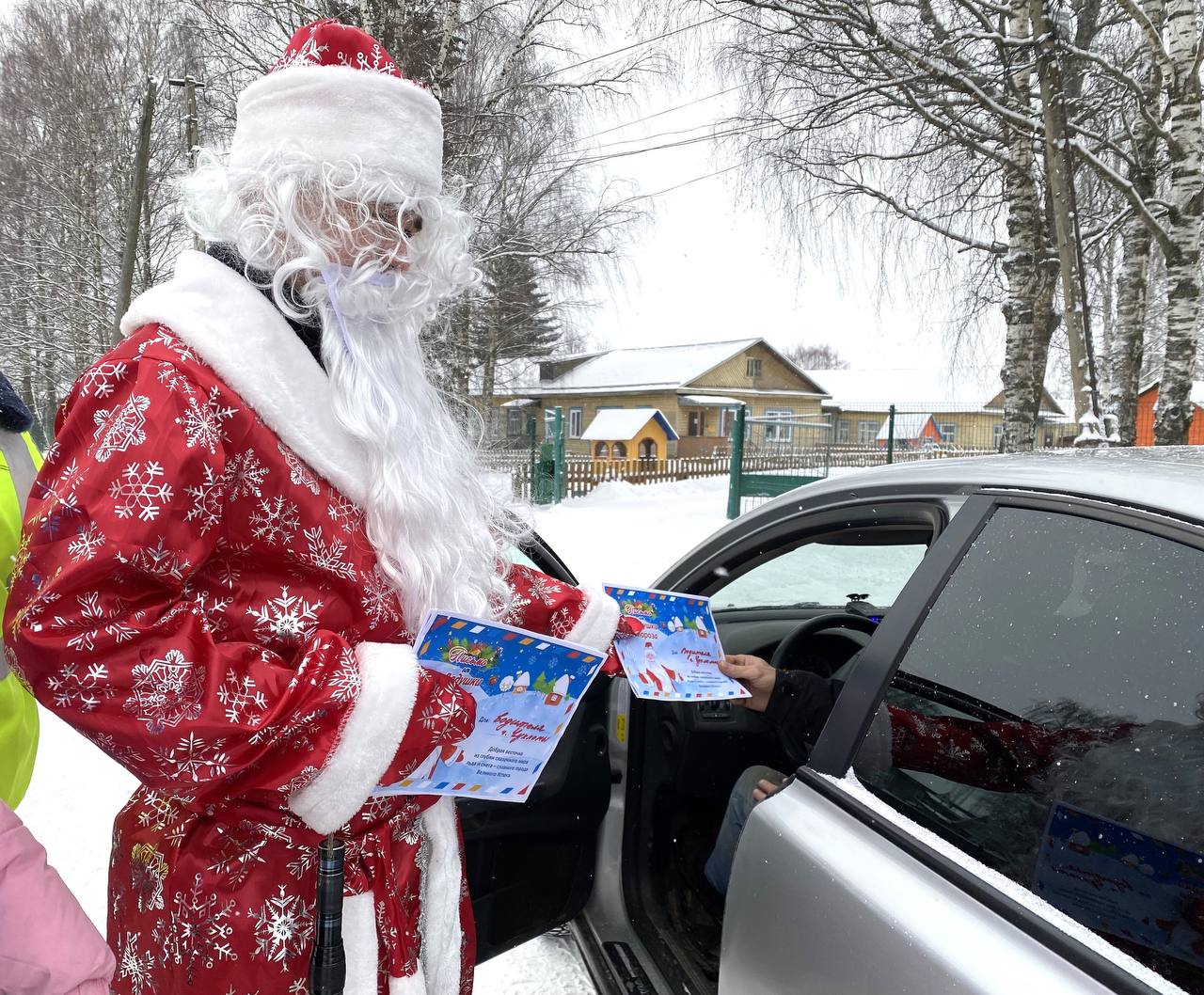 Профилактическую акцию «Почта Дор Мороза» организовали сотрудники Чухломской Госавтоинспекции совместно с активистами отряда ЮИД «Дорожный патруль» Чухломской средней школы, представителями Движения Первых и волонтёрами Молодёжноспортивного центра. Полицейский и ЮИДовский Деды Морозы со своими помощниками поздравили водителей с наступающим Новым годом и пожелали безопасных дорог.