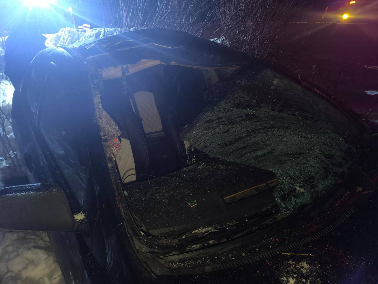 18 января около 18 часов 50 минут на 60 км автодороги «Пыщуг-Павино-Вохма-Боговарово» Павинского района Костромской области 36-летний водитель автомобиля Тойота при движении по проезжей части дороги совершил наезд на внезапно выбежавшее с правой стороны дороги животное - лося, после чего, потеряв контроль над управлением транспортным средством, совершил съезд с дороги в правый по ходу движения кювет. В результате ДТП 41-летняя пассажирка получила телесные повреждения.