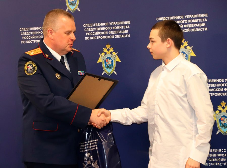 Школьник из Костромы награжден благодарственным письмом руководителя следственного управления СК России по Костромской области за помощь в спасении ребенка от преступных действий