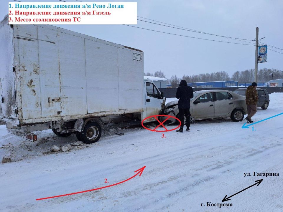 1 февраля в 14 часов 44 минуты в городе Нерехта на улице Гагарина 26-летний мужчина, управляя транспортным средством Газель, нарушил правила расположения транспорта на проезжей части, в результате произошло столкновение с автомобилем Рено под управлением 71-летнего мужчины. В результате ДТП водитель Рено получил телесные повреждения.