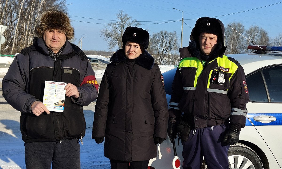 Каждому водителю полицейские и общественники вручили тематические памятки и пожелали счастливого пути.