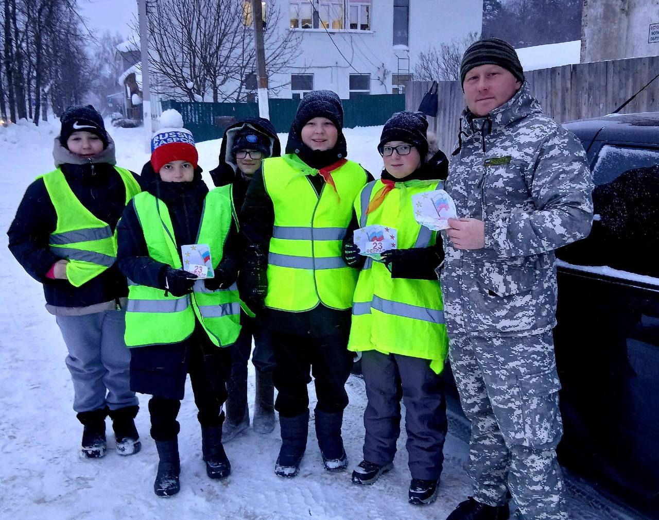 В преддверии Дня защитника Отечества юные инспекторы дорожного движения отрядов «Дневной дозор» и «Дорожный патруль»Судиславской средней общеобразовательной школы совместно с руководителем и сотрудниками Островской Госавтоинспекции провели профилактическую акцию «Безопасность дорог — под защитой!»