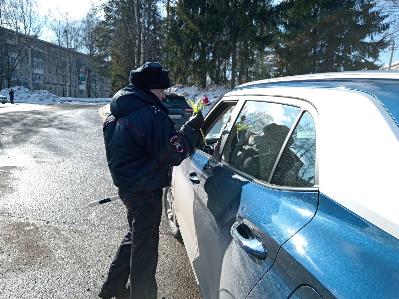 Весенний праздник на дорогах: акция «Цветы для автоледи» продолжается во всех уголках Костромской области