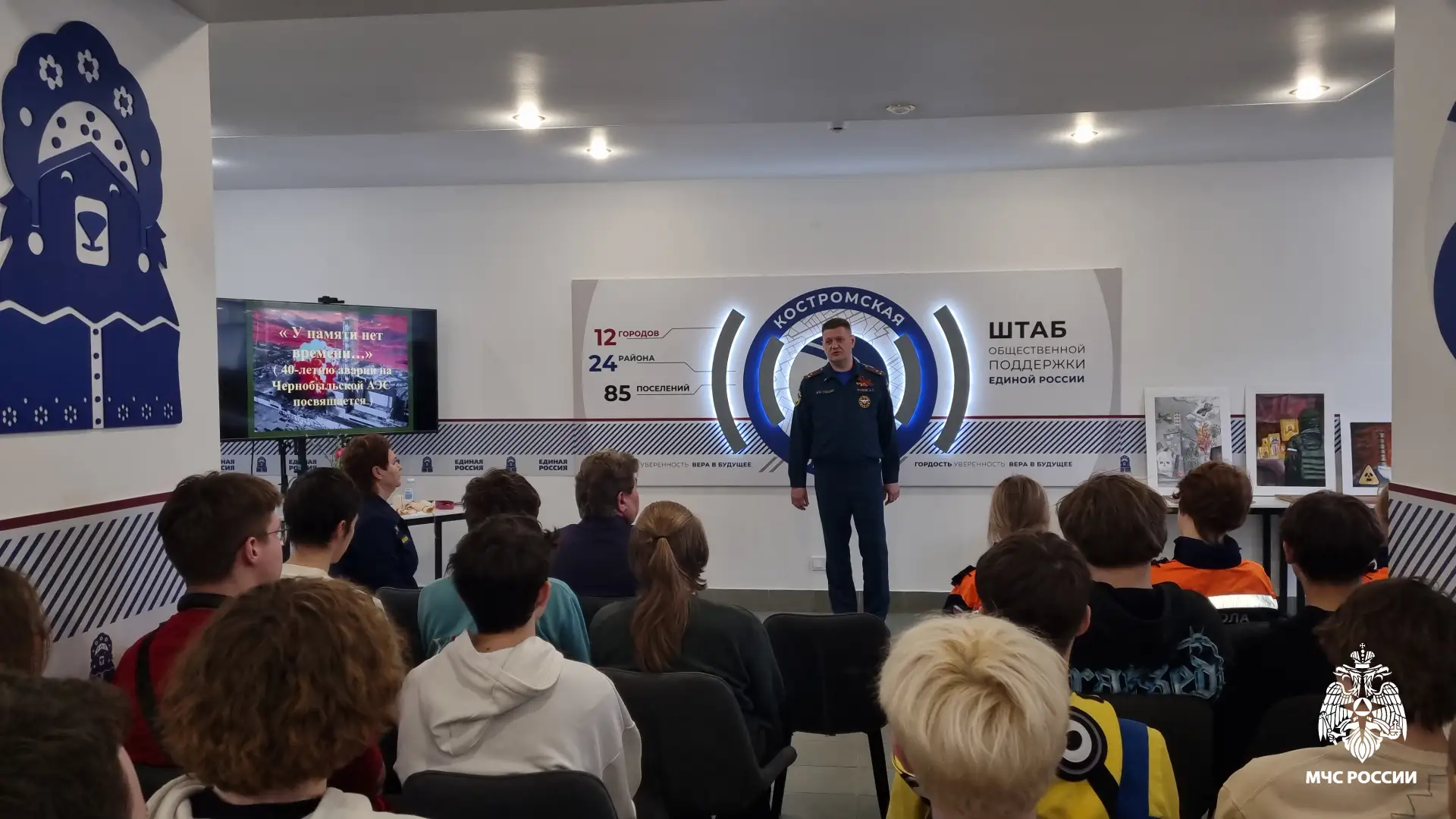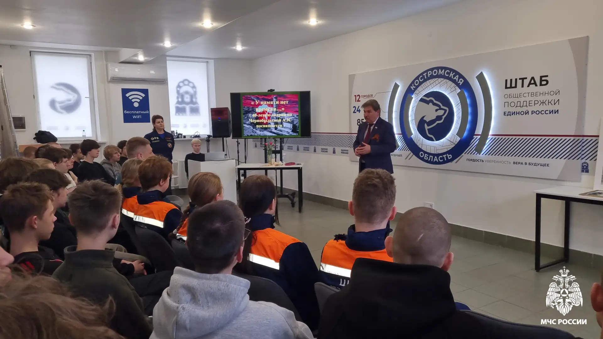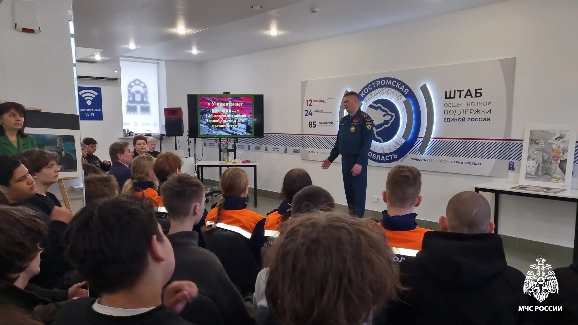 К 40-летию катастрофы в Чернобыле в Штабе общественной поддержки Костромской области состоялся урок мужества «У памяти нет времени…» для студентов-лидеров движения «Школы безопасности и учащихся Костромского торгово-экономического колледжа.