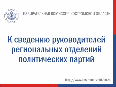 Напоминаем, что в соответствии с пунктом 3 статьи 34 Федерального закона «О политических партиях» региональные отделения политических партий, зарегистрированные на территории нашего региона, должны представить в избирательную комиссию Костромской области финансовую отчетность в срок не позднее чем через 30 дней со дня окончания квартала, то есть не позднее 30 октября текущего года.