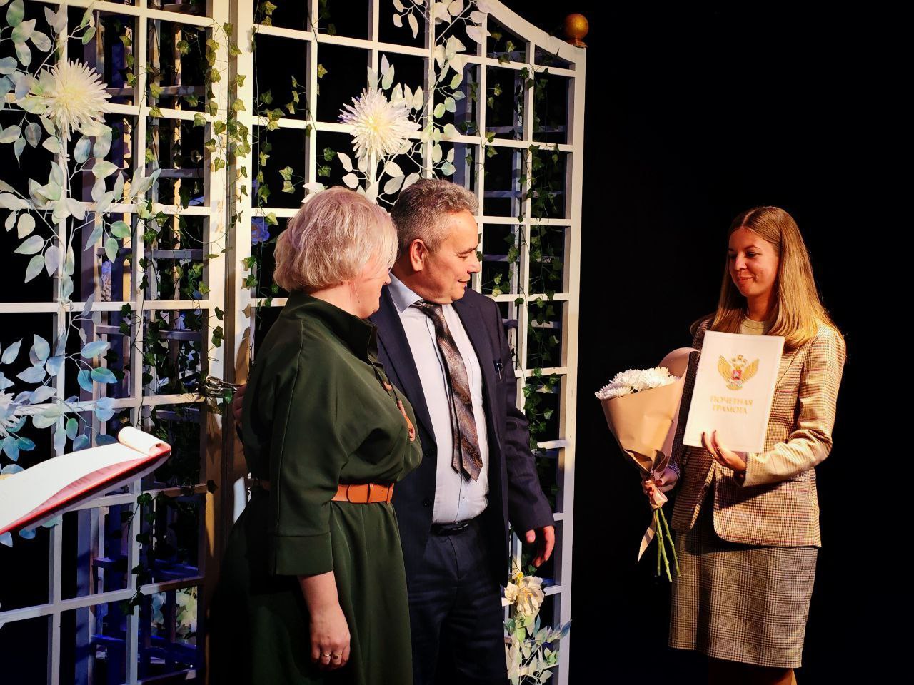 В преддверии Дня учителя поздравил костромских педагогов с профессиональным праздником. Лучшие преподавали сегодня были приглашены в наш камерный театр для вручения заслуженных наград. Звание почетного работника сферы образования РФ присвоено заведующей центром обеспечения качества образования Светлане Исмагиловой. Почетную грамоту Министерства просвещения вручил директору школы №3 Ольге Панкратьевой и директору "Экосферы" Евгении Леонтьевой.