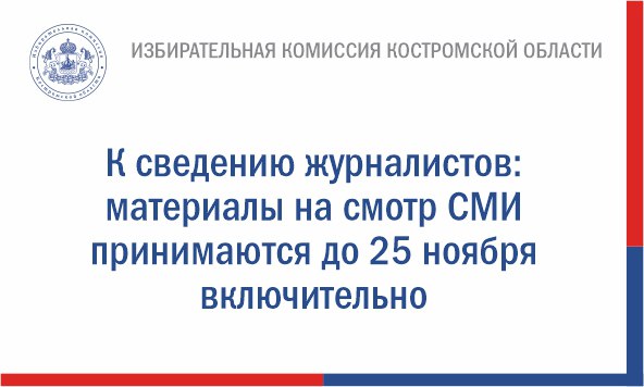 Избирательная комиссия Костромской области объявляет о приеме материалов для участия организаций СМИ в ежегодном смотре работы по правовому просвещению и информационному обеспечению избирателей.
