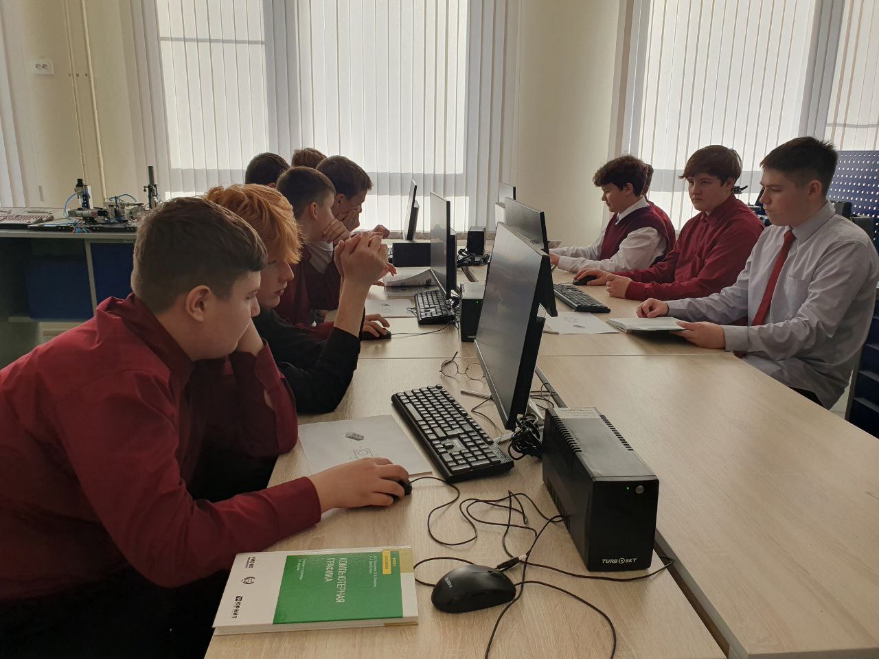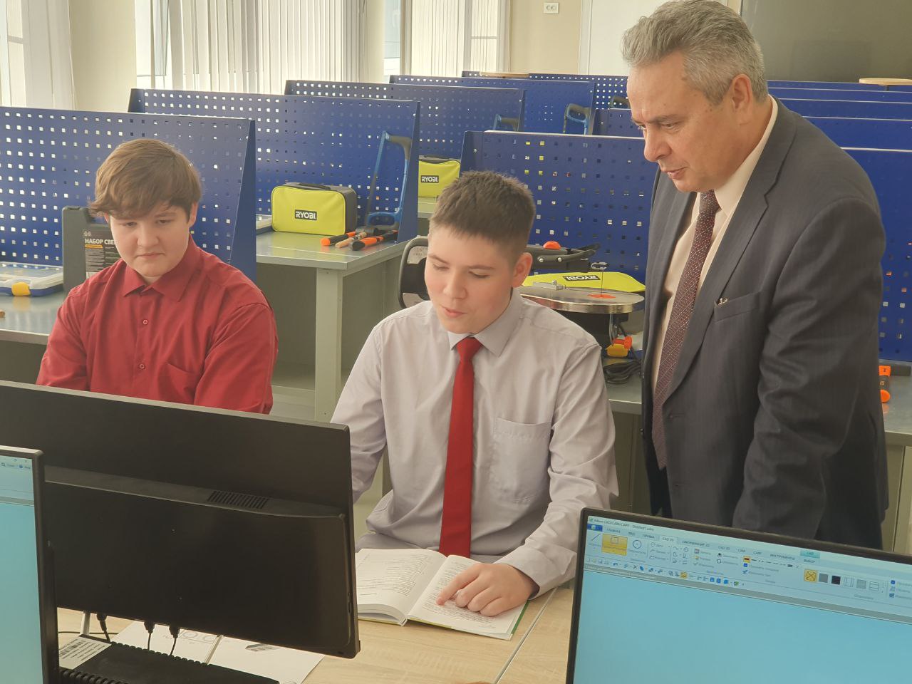 Встретился с педагогами новой школы. Одно из ключевых направлений образовательного процесса - развитие технического образования. Для мальчиков создана целая комбинированная мастерская. Здесь есть все: от столярных станков до компьютерного оборудования. Поручил управлению образования помочь школе в межведомственном взаимодействии. Изучать программирование и моделирование хорошо, но ребятам нужна будет практика. В планах школы – работа в сотрудничестве с машиностроительным техникумом. Считаю, это верное профориентационное направление.