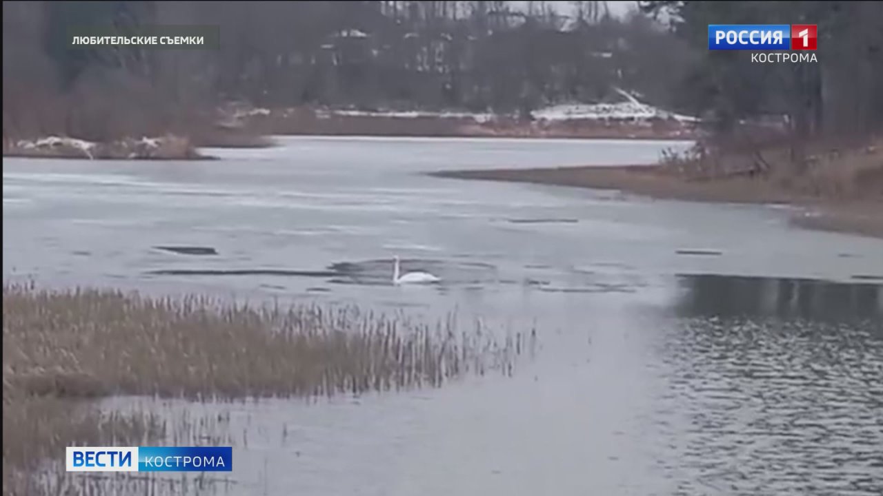 Жители Судиславля обеспокоены судьбой белого красавца. Одинокую птицу заметили на местном озере. Водоем уже покрыл первый лёд, и лебедь оказался зажат в небольшой проруби. Судиславцы решили, что птице нужна помощь и забили тревогу. На место выехали специалисты. Все подробности узнала ГТРК «Кострома».