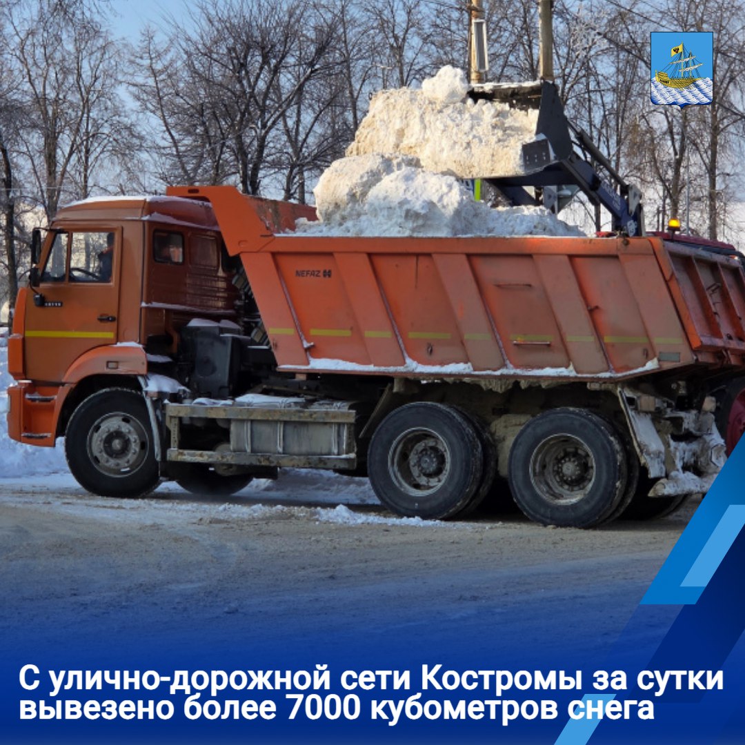 Костромские дорожники увеличивают объемы вывоза снега с улично-дорожной сети города. В первоочередном порядке эти работы проводятся на мостах и путепроводах, перекрестках дорог, остановках общественного транспорта и пешеходных переходах, а также на участках, где наблюдается заужение проезжей части.