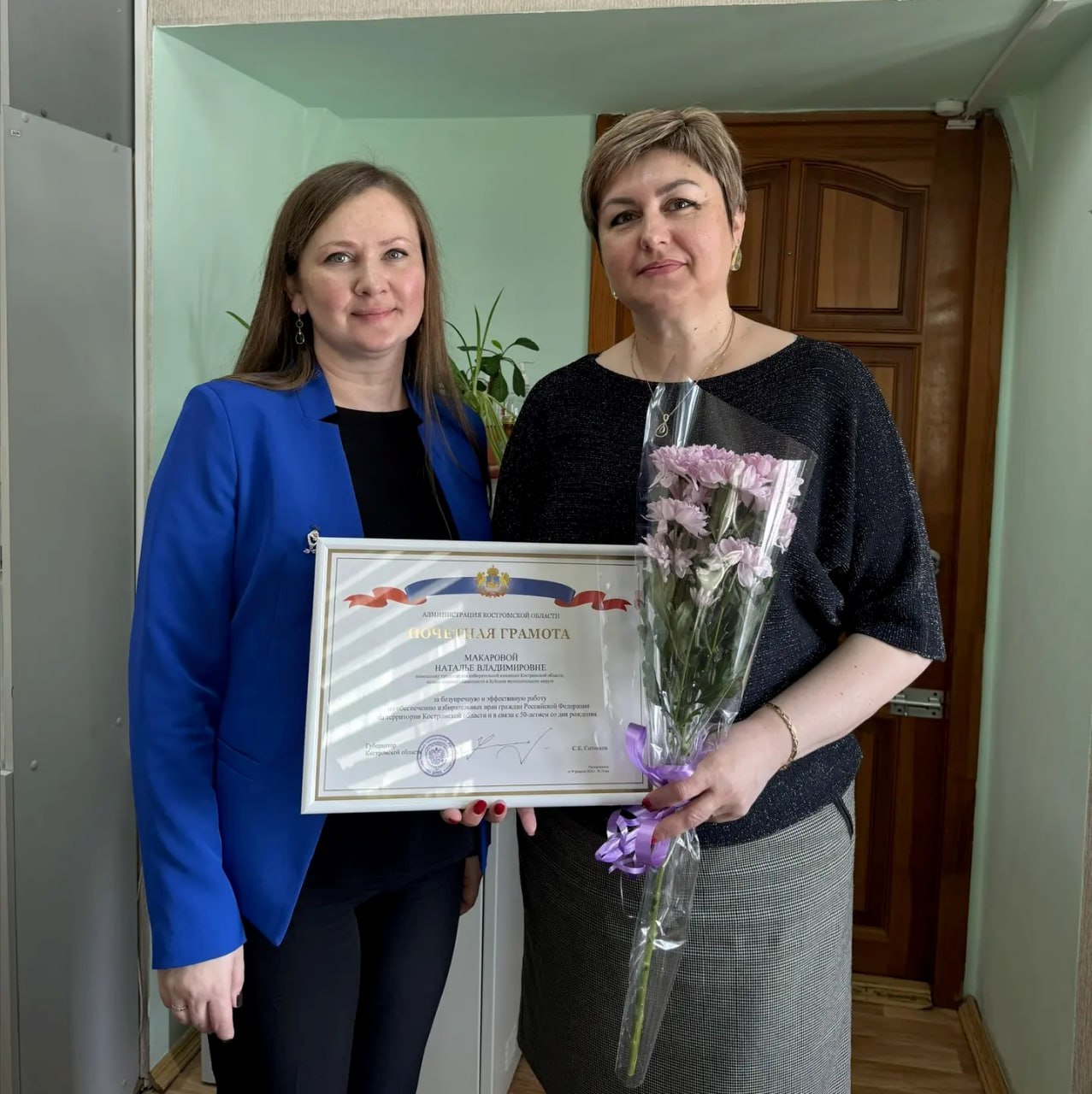 Председатель территориальной комиссии № 2 города Костромы Татьяна Яновская и председатель территориальной комиссии Буйского муниципального округа Наталья Макарова удостоены Почетной грамоты администрации Костромской области.