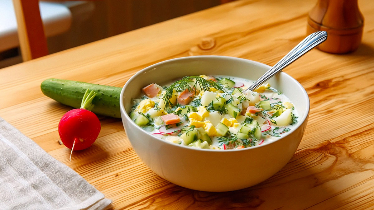 Окрошка — это традиционное летнее блюдо, в котором вся суть заключается в свежести и легкости. Ингредиенты мелко нарезаются и заливаются холодной заправкой. Для приготовления окрошки можно выбирать разные напитки: квас, кефир, айран или минеральную воду. Это не только освежает в жаркую погоду, но и позволяет избежать ощущения тяжести после еды. Можно смело сказать, что окрошка является «суповым» вариантом известного салата оливье.