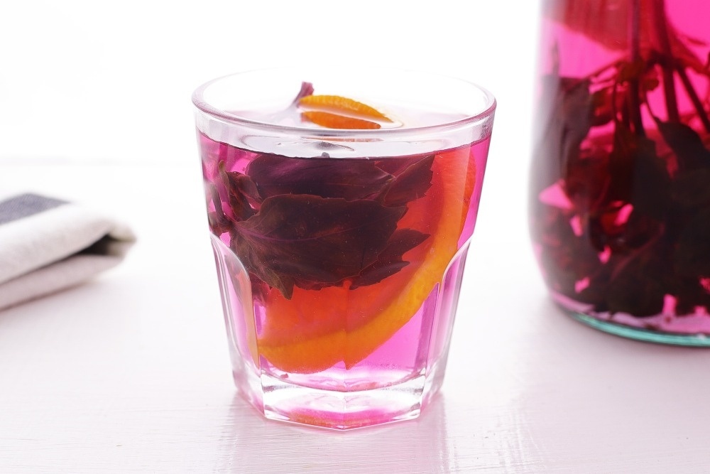 Подготовка ингредиентов: Для начала выбираем свежий фиолетовый базилик, который подарит компоту насыщенный цвет и уникальный пряный аромат. Листья должны быть плотными, без пятен и пожелтений.