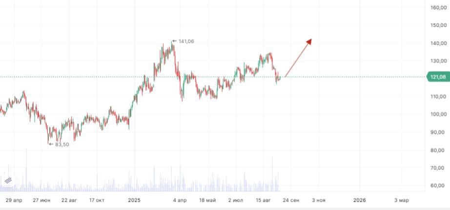 Ожидается, что акции Ренессанса могут подняться до 150 рублей в течение месяца, что представляет собой 23,9%-й потенциал роста от текущих уровней. Вход в позицию может составлять 5% от общей стоимости портфеля, что дает возможность для управления рисками. Для защиты инвестиций установлен стоп-приказ на уровне 110 рублей, что обеспечивает аккуратный баланс риска и доходности.