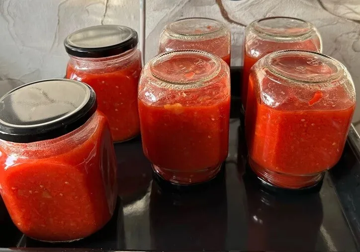 После того как все ингредиенты соединены, следует довести смесь до кипения и варить на среднем огне около 40 минут. В конце варки добавьте 100 мл уксуса 9%, затем доведите до кипения. Разлейте горячий соус по заранее подготовленным стерилизованным банкам и закройте плотно. Хранить заготовку рекомендуется в темном и прохладном месте, чтобы сохранить все ароматы и вкусы.
