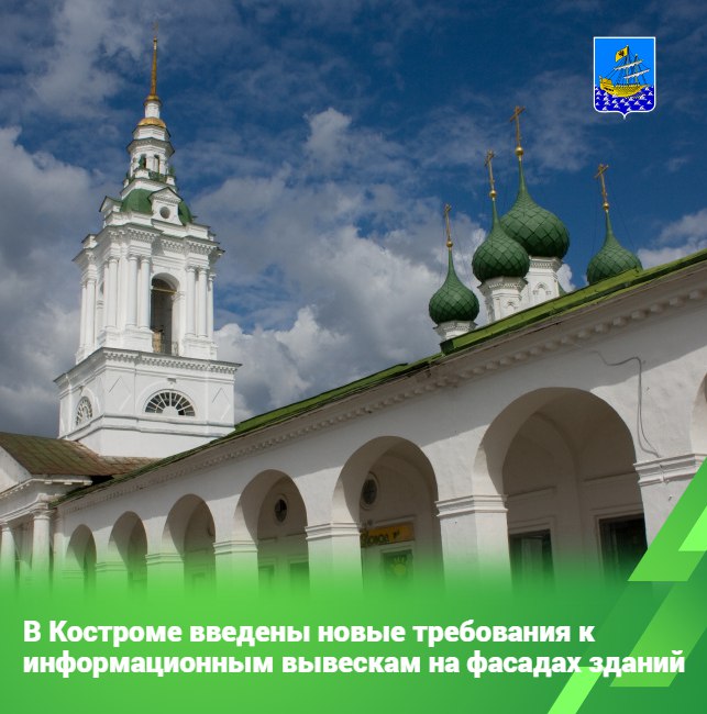 На территории Костромы начали действовать новые требования к информационным вывескам, которые размещаются на фасадах зданий. Новые требования к размещению, эксплуатации и демонтажу вывесок разработаны в целях улучшения визуального архитектурного облика города. Документ уточняет понятие «вывеска» и вводит дополнительные категории средств размещения информации: «режимная табличка» и «консольная вывеска». Их отличием является содержательная сторона.