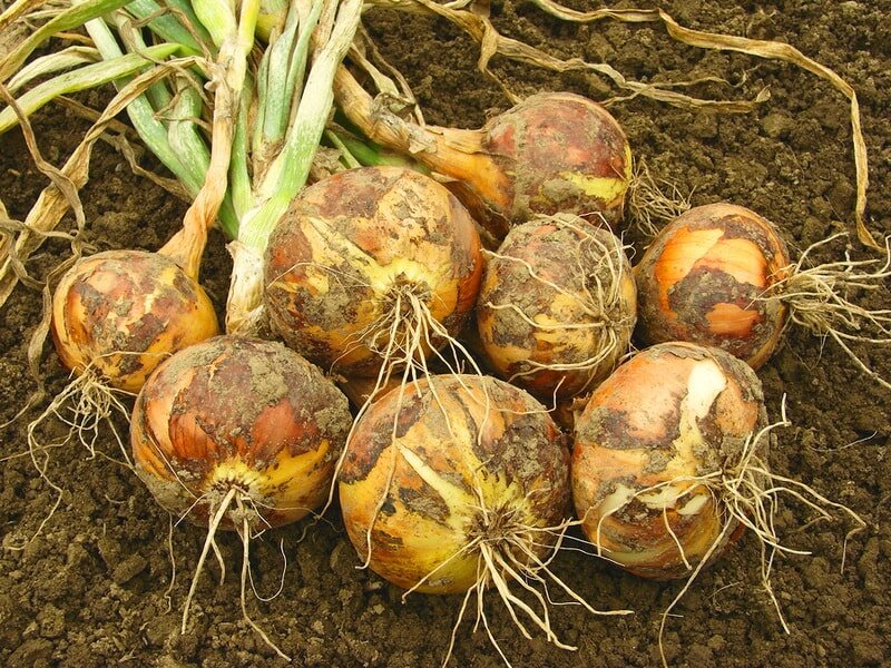 Уборка лука начинается после того, как луковицы полностью созревают. Обычно этот процесс стартует через три-четыре месяца после высадки, когда чешуйки становятся плотными и приобретают характерный для сорта цвет, а перья в основном высыхают и наклоняются. К сбору урожая чаще всего приступают в августе, в последний месяц жаркого лета.