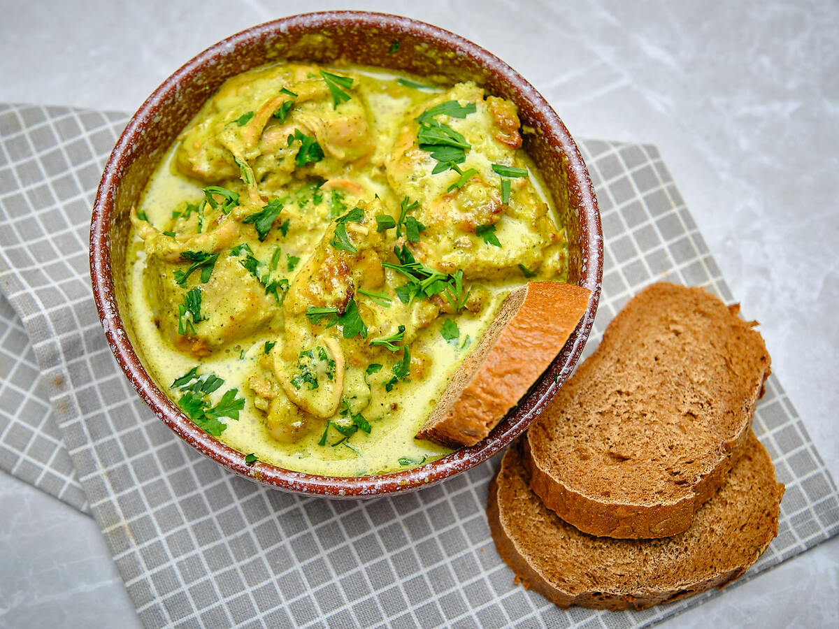 Когда курица достигнет идеальной золотистой корочки, её помещают в соус на пару минут. Важным моментом будет подача: обязательно дополняйте блюдо свежим хрустящим хлебом, чтобы насладиться каждым каплей соуса!