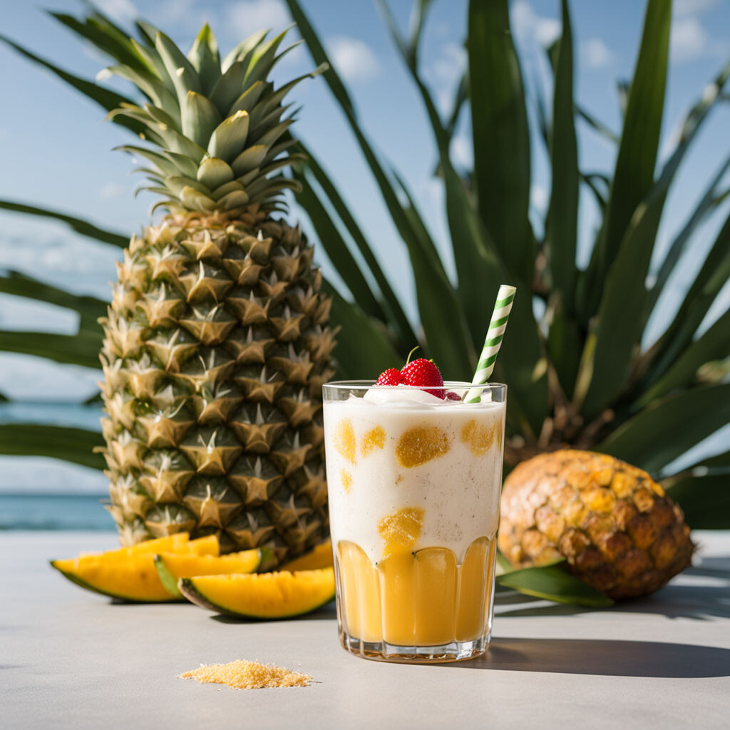 При создании этого уголка тропиков, манго и ананас сначала очищаются и нарезаются кубиками, затем помещаются в блендер с кокосовым молоком, мёдом и льдом. Блендер делает свою работу, и напиток готов! Его подают в высоком стакане с яркой трубочкой, создавая настроение для долгожданного летнего дня.