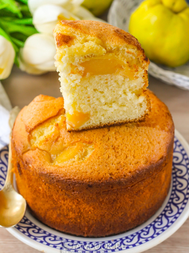 Несмотря на то, что сезон айвы недолог, расцвет её кулинарной магии вновь привлекает внимание любителей выпечки. Бисквит с айвой — это не просто пирог, а удивительная симфония классики и оригинальности. Если кажется, что айва — это фрукт, который сложно использовать в кулинарии, рекомендовано попробовать приготовить этот изысканный десерт. Готовый пирог радует глаз своей яркостью и нежностью.