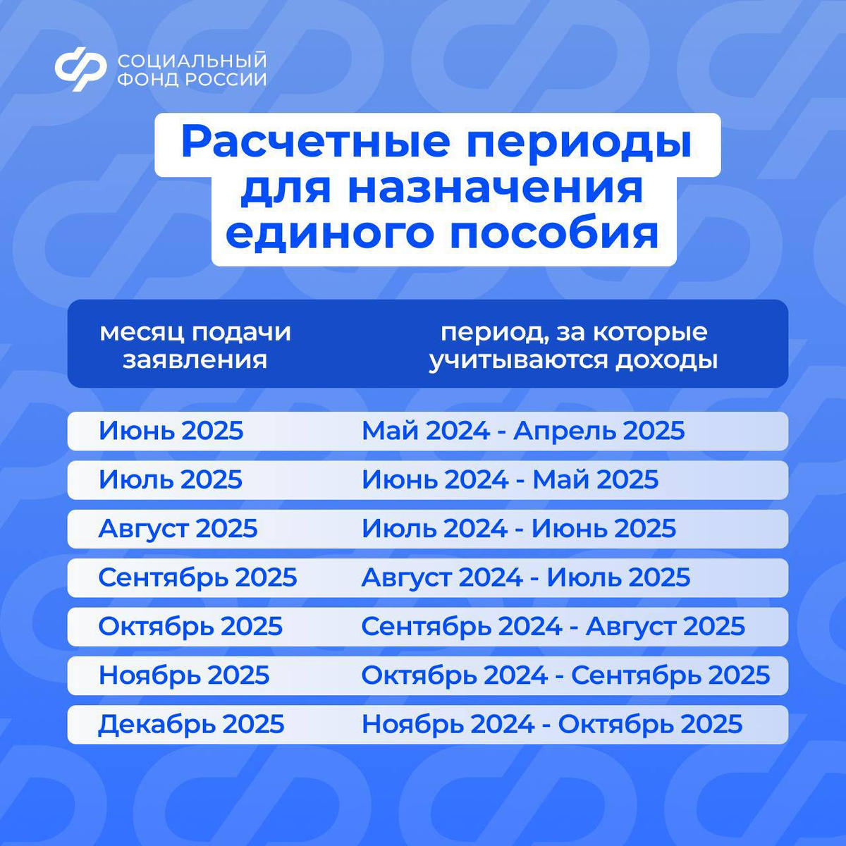Расчетный период начинается за один месяц до подачи заявления. Это значит, что, подав документы в июне 2025 года, учитываются доходы, полученные с мая 2024 по апрель 2025. Вот несколько примеров для наглядности: