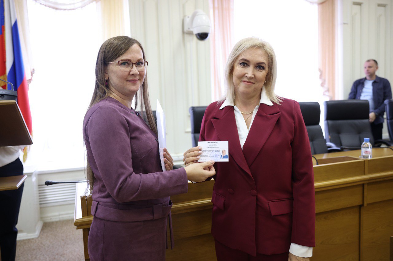 Марина Анатольевна вручила народным избранникам удостоверения депутатов, а также сборник лучших работ областного конкурса «Письмо кандидату» от молодых и будущих избирателей региона.