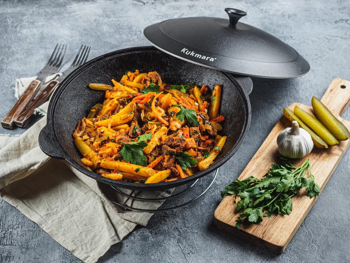 Чугунная посуда, бережно ухоженная, сохраняет свои качества на долгие годы и, зачастую, со временем становится только лучше. Поразительно, как такая простая техника может придавать блюдам уникальный вкус и шарм, центром создания которого может стать стильно оформленная посуда от бренда Kukmara.