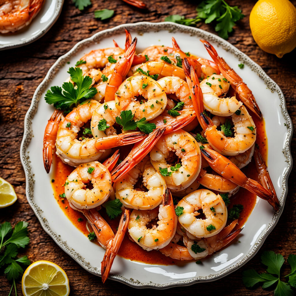 Чесночные креветки с лимоном и петрушкой