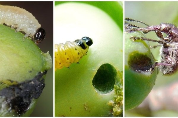 Не менее опасен яблоневый пилильщик с характерными черными и бурыми оттенками, который делает кладки в бутонах. Личинки этого вредителя служат причиной массового осыпания маленьких яблок.