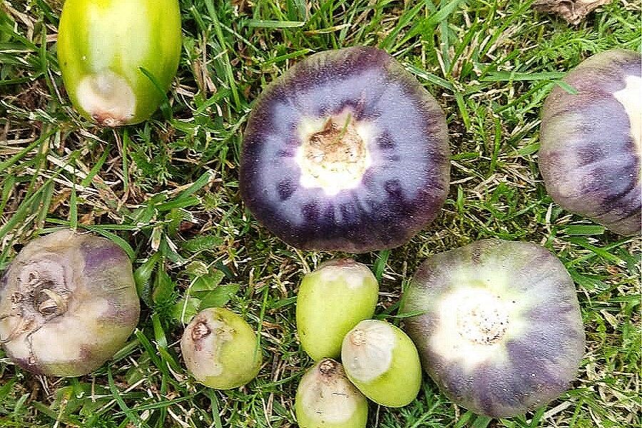 - На плодах: Вершина плода начинает покрываться белыми пятнами, которые с течением времени темнеют, становятся жесткими и начинают гнить. Особенно уязвимы сливовидные сорта.