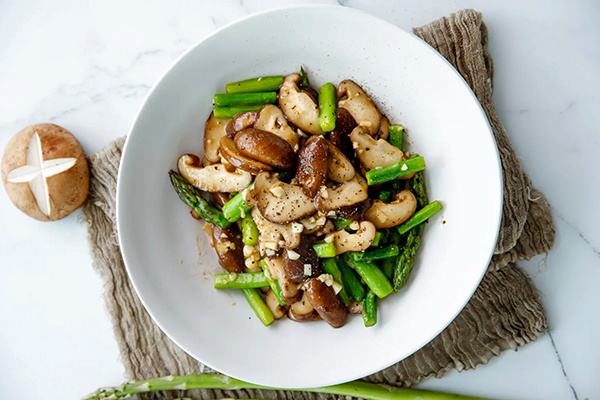 Готовьте ужин за считанные минуты, не утруждая себя мясом. В китайской кухне грибы шиитаке получили название «умами-магниты» благодаря своему глубокому, насыщенному вкусу. Эта находка отлично зарекомендовала себя в буддийских монастырях, где шиитаке замещают мясные продукты. В сочетании с хрустящей спаржей, щепоткой устричного соуса и каплей кунжутного масла, получается блюдо, которое становится настоящим гастрономическим открытием.