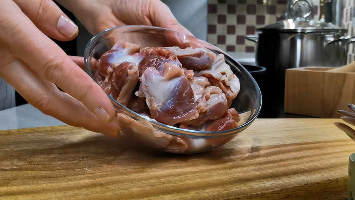 Сегодня представляем один из наиболее популярных рецептов, который заставит даже игнорирующих его в детстве попробовать с удовольствием. Для начала необходимо подготовить желудочки: тщательно промыть и очистить от лишнего, удалив мелкие жилки и плёнки. После чего нарезать их на кусочки, чтобы было удобно есть.