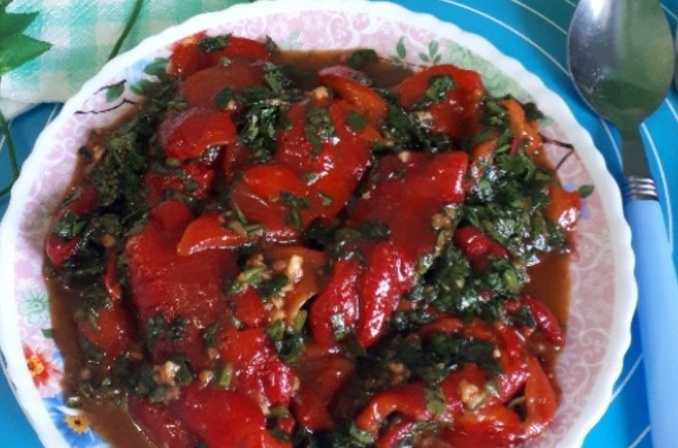 Когда закуска будет готова, залейте перцы полученным соусом, перемешайте и дайте настояться, чтобы все ароматы раскрылись в полной мере.
