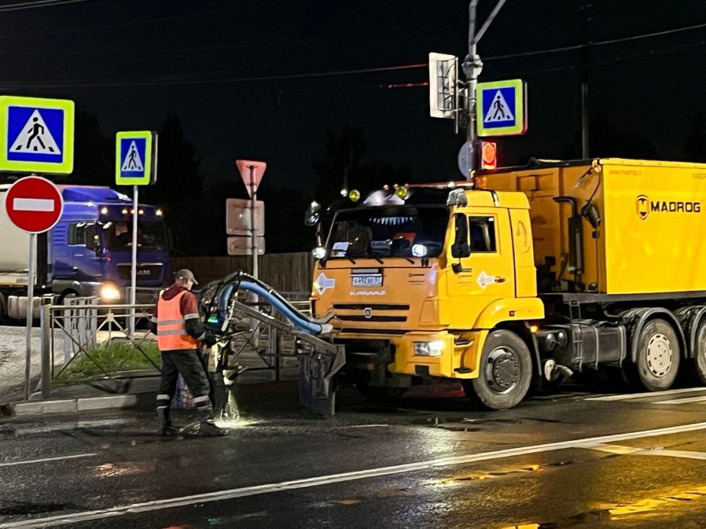 В первую очередь, устранение дефектов организовано на участках с высокой интенсивностью движения, вблизи соцобъектов. Здесь дорожники проливают трещины на проезжих частях битумом, устраняют ямы и выбоины.