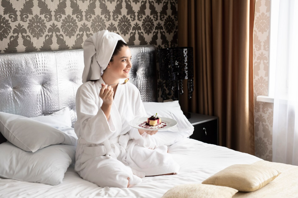 - Бутылка воды и мини-продукты: Если на столе стоит вода без пометки о стоимости, она принадлежит вам, как и мини-пакеты с сахаром и специями.