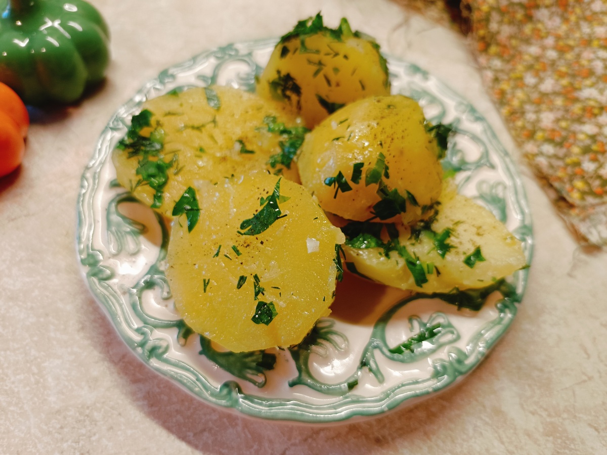 Нежная, рассыпчатая вареная картошка, приправленная свежей зеленью и чесноком — это не просто блюдо, а настоящая гастрономическая симфония! Особое удовольствие оно приносит в сочетании с селедкой и бокалом вашего любимого напитка.