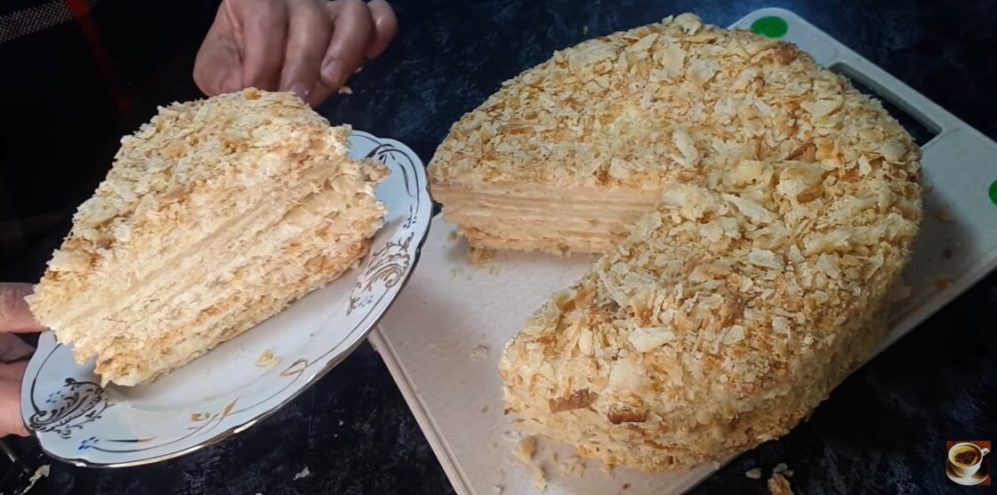 Простой, но невероятно вкусный торт "Наполеон" готов! Теперь его можно подавать к чаю и наслаждаться непревзойденным вкусом.