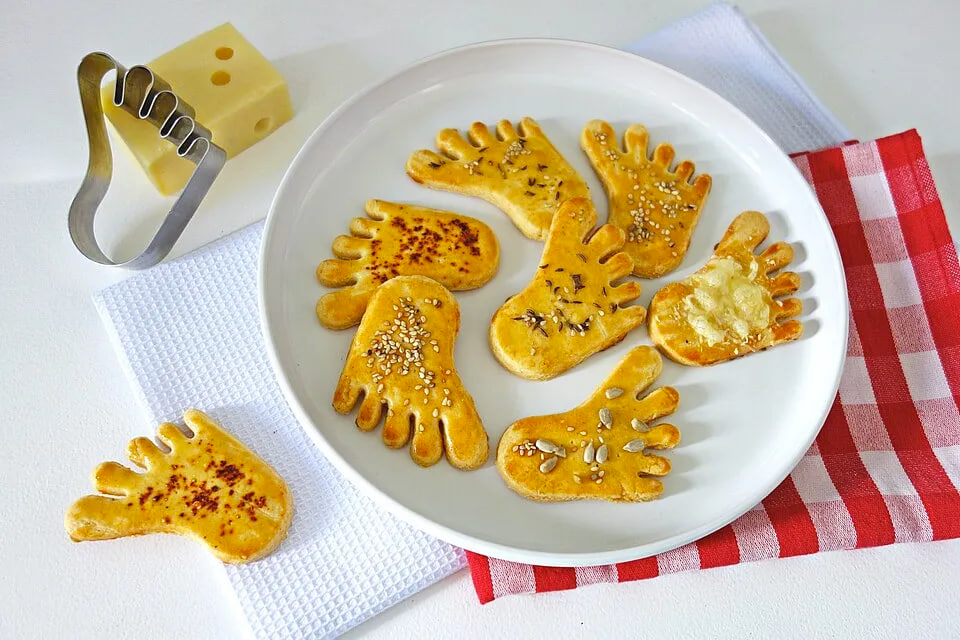 Раскатайте тесто в пласт толщиной не более полусантиметра и используйте специальную формочку, чтобы вырезать печенья в виде ноги. Выложите их на противень, предварительно застеленный бумагой для выпекания. Очередной шаг — смазать поверхность желтком и, при желании, посыпать семенами. Теперь осталось лишь поместить противень в заранее разогретую до 175 градусов духовку и выпекать в течение примерно 10 минут.