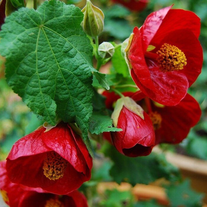 - Абутилон: известен как комнатный клен. Цветет с весны до осени, радуя глаз своими красными цветами, напоминающими сердечки. Этот элегантный кустарник предпочитает температуру в диапазоне 15-25 градусов. Украсив его свойствами глянцевых листьев, абутилон будет нуждаться в регулярном опрыскивании и подкормках.