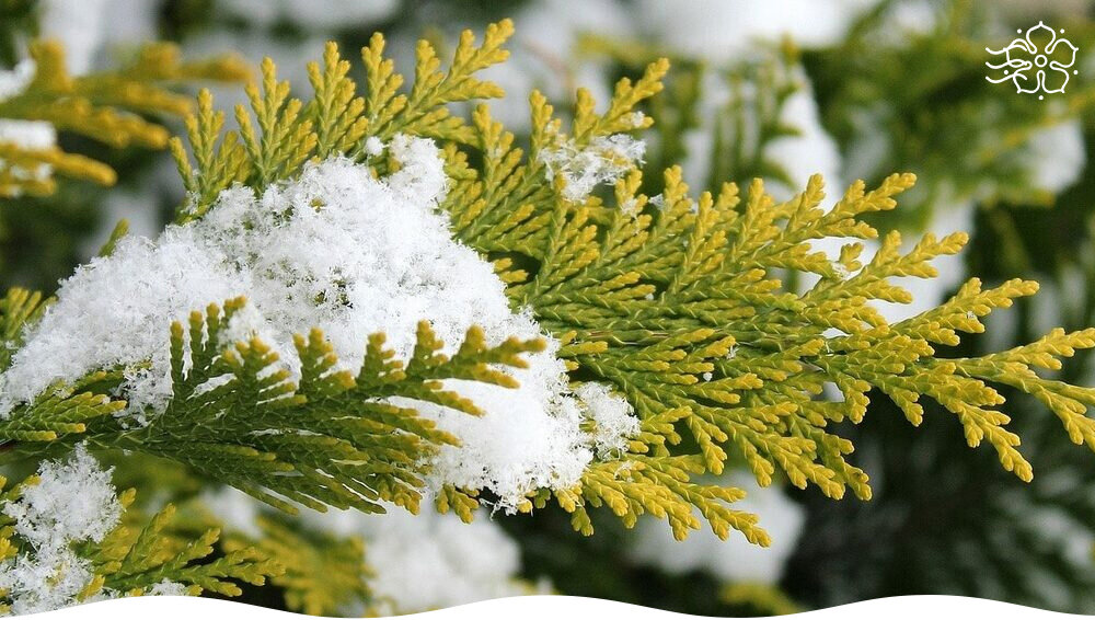 Чтобы защитить крону от снежной массы, особенно если форма дерева колонновидная или шаровидная, ветки аккуратно пригибают к стволу и обвязывают веревкой. Эту процедуру лучше выполнять вдвоем. Но не страшны морозы для хвойников – ощутимым риском для них становятся солнечные ожоги весной. Чтобы предотвратить это, кроны укрывают белым нетканым материалом. Делать это следует в декабре или январе, но если добраться до деревьев трудно, осень будет хорошим временем для укрытия, когда температура начнет опускаться ниже нуля.